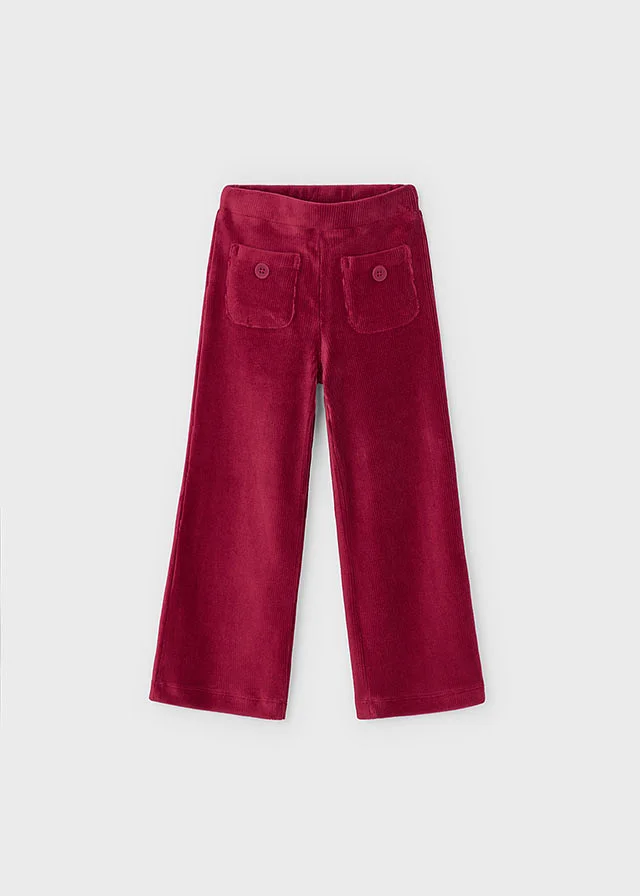 Pantalón para niña. Goma elástica regulable con botones en el interior de la cinturilla para mayor ajuste. Cálido tejido de pana de gran comodidad y suavidad. Modelo con rizo. Bolsillos funcionales en la parte delantera.