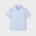 Camisa de manga corta para niño. Cuello camisero. Cierre con botones en la parte delantera. Bolsillo funcional en la parte delantera. Diseño liso. Al elegir nuestros productos de algodón estás apoyando nuestra inversión en la iniciativa Better Cotton. El algodón Better Cotton se obtiene mediante un sistema de balance de masas y no se puede rastrear físicamente hasta los productos finales. Sin embargo, los productores de algodón se benefician de la demanda de Better Cotton en volúmenes equivalentes.