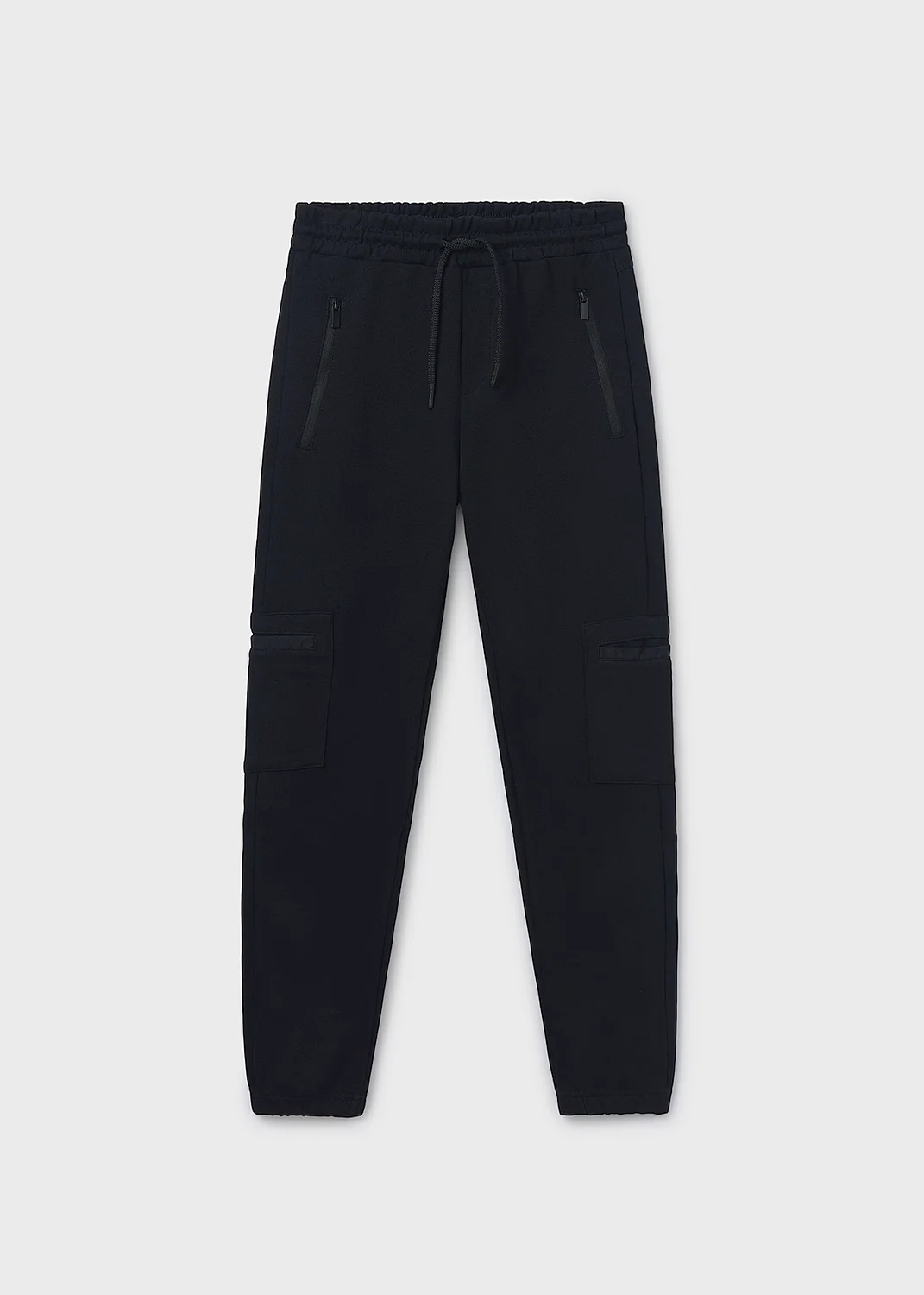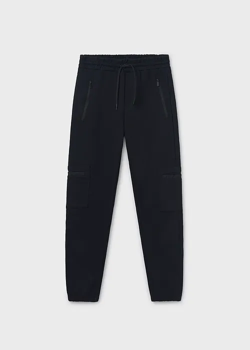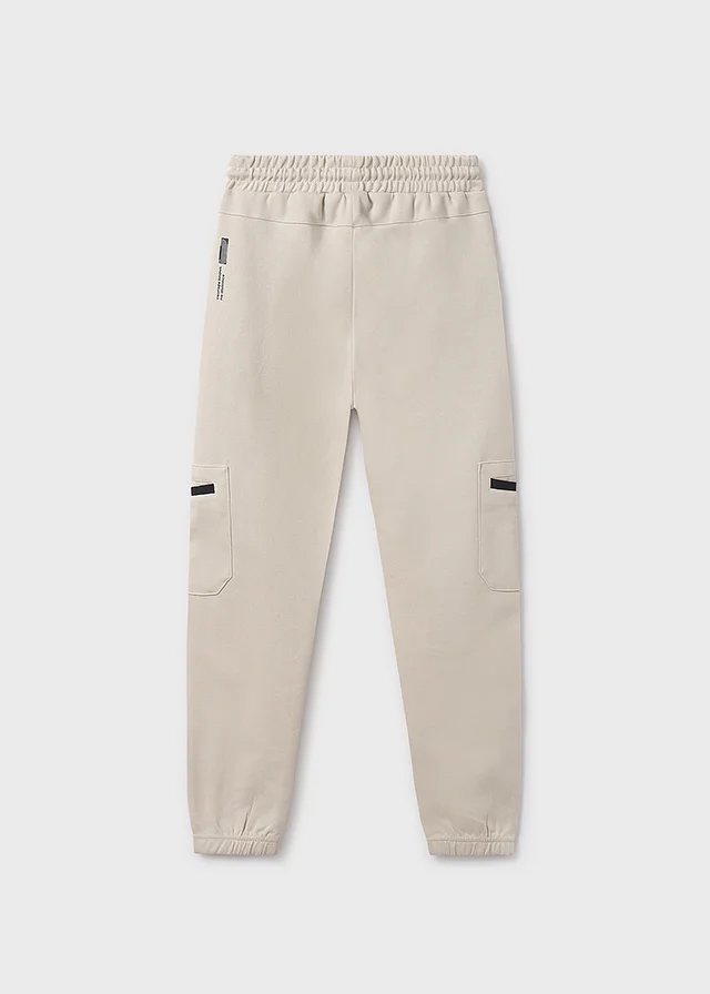 Pantalón largo para chico de silueta training, con cinturilla y bajos elásticos. Cinturilla elástica con cordón. Diseño con múltiples bolsillos. Elementos de adorno: serigrafía (print).