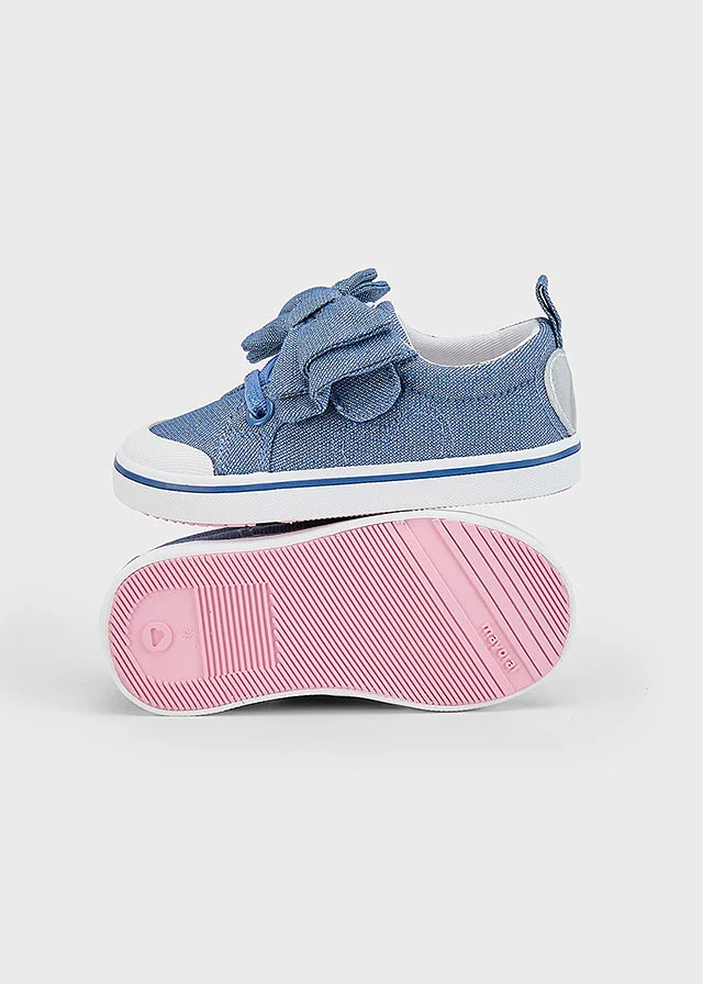 Modernos botines deportivos para bebé, ideales para dar un toque casual a su look. Forro interior y plantilla de algodón transpirable. Suela de goma antideslizante para afianzar la pisada. Cierre con velcro ajustable que garantiza una perfecta sujeción del pie. Lazo decorativo.